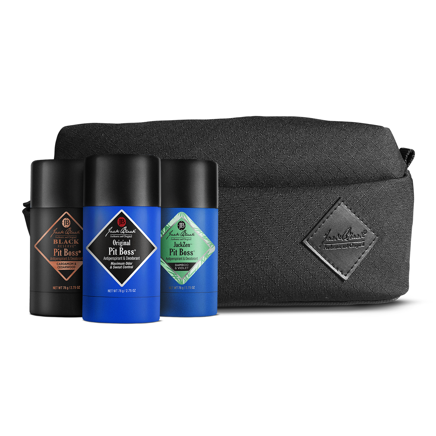You don’t have to pick just one of our Pit Boss? aromas. This set features 3 of our best-selling scents ?? Black Reserve?. Original. and JackZen? ?? plus a luxe travel bag. Feel your best and smell your best with this Pit Boss? bundle.