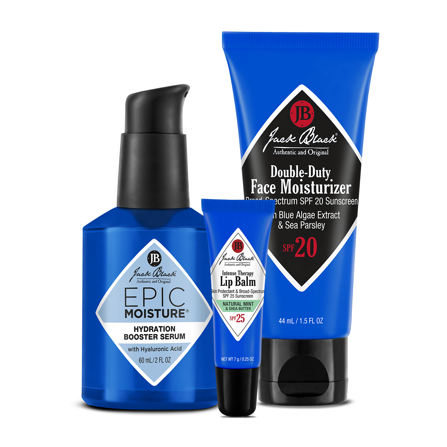 Here’s your new hydration starter kit featuring Epic Moisture? Hydration Booster Serum. Double-Duty Face Moisturizer. and Intense Therapy Lip Balm in Natural Mint. Grab this trio. see a boost in hydration. and save ?? your skin and wallet will thank you.